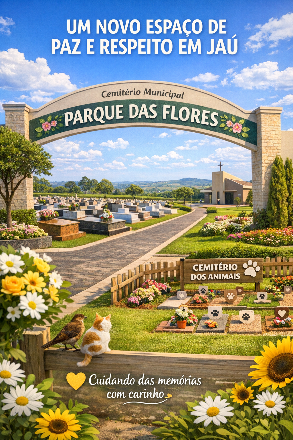 E tem mais: ao lado do cemitério, uma área especial dedicada aos pets também está sendo preparada, reforçando o cuidado com todos os vínculos que fazem parte da nossa história.